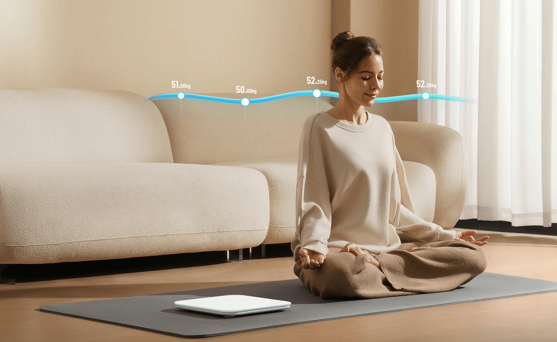 Высокоточный цифровой датчик способен улавливать изменения веса с точностью до 0,05 кг. Это позволяет ежедневно отслеживать колебания веса и контролировать параметры тела в режиме реального времени.